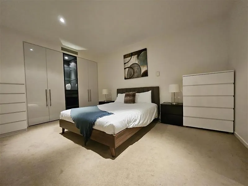 ベッドルーム1室のメルボルンLevel 50 With Skyline Viewsアパートメントはユーレカタワーから徒歩で5分以内の場所にあります。 お客様の快適な滞在のために、Wi-Fiと駐車場を用意しています。